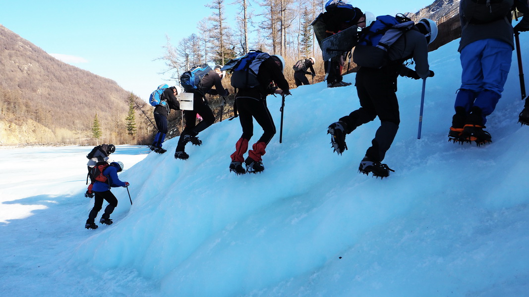 В этом году гора не со всеми была приветлива! Кто-то нас пугал испортившейся погодой на вершине; кто-то говорил, что по этому склону невозможно подняться даже в "кошках"; уже на подъеме навстречу спасатели эвакуировали двух пострадавших; погода несколько раз "нахмуривалась" пугая сильными порывами ветра и снежком. Но, тем не менее, мы это сделали! Уже на предвершинном хребте погода разъяснилась и Мунку-Сардык показала нам бескрайние просторы Монгольского Хубсугула и остроконечные пики Саян.